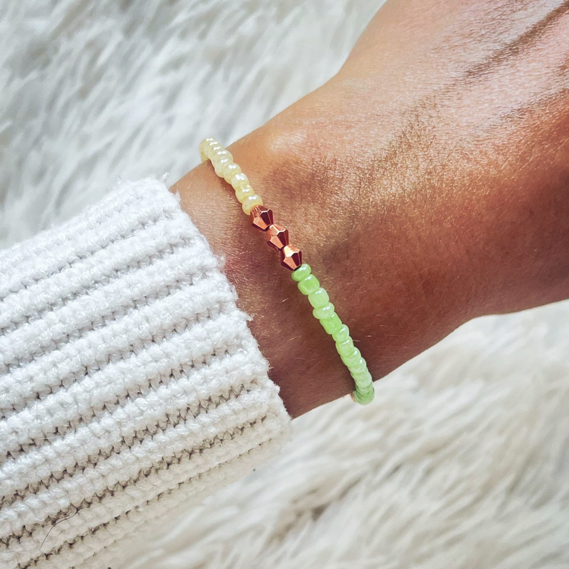 Die metallischen Perlen könnt ihr mit einer dünnen Schicht farblosen Nagellack überziehen. Somit habt ihr lange Freude an eurem Schmuckstück und keine Verfärbungen durch bspw. Schweiß oder Wasser.