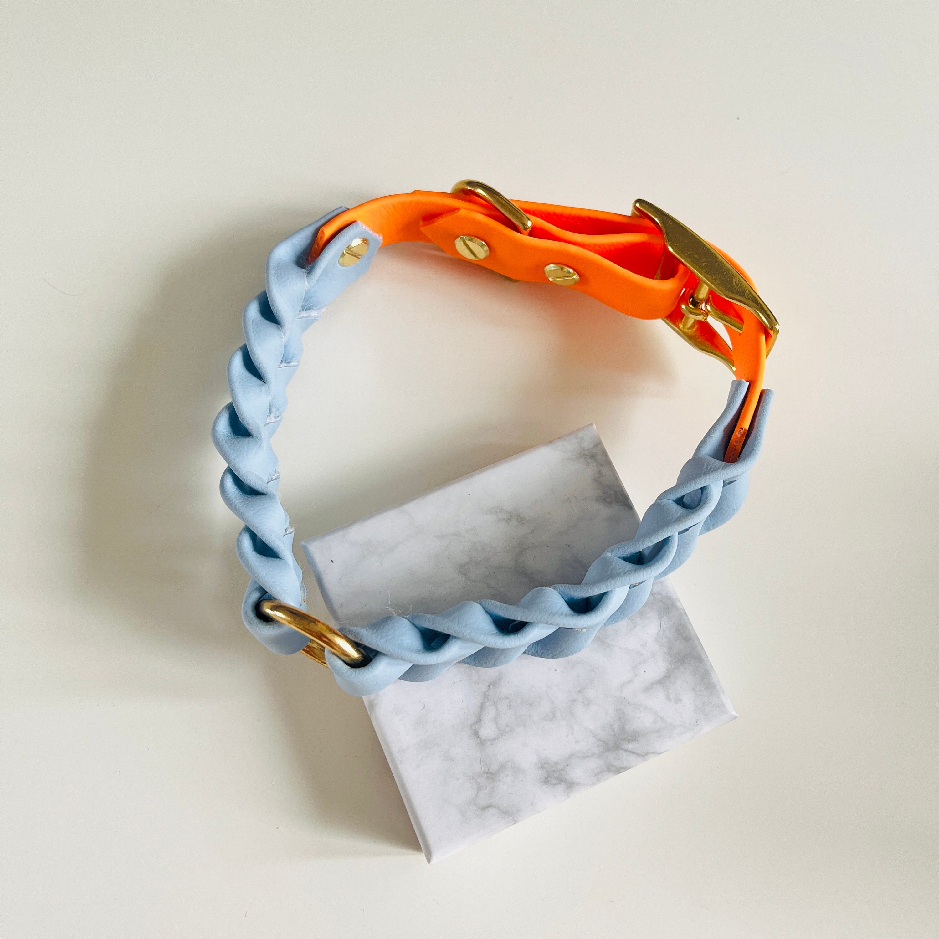 Biothane is a robust material and an alternative to leather. It is easy to clean with water. The fittings for the collar can be chosen in rose gold, gold or silver.