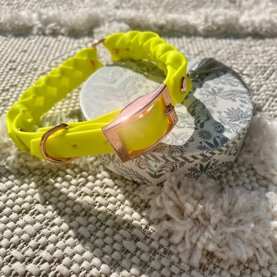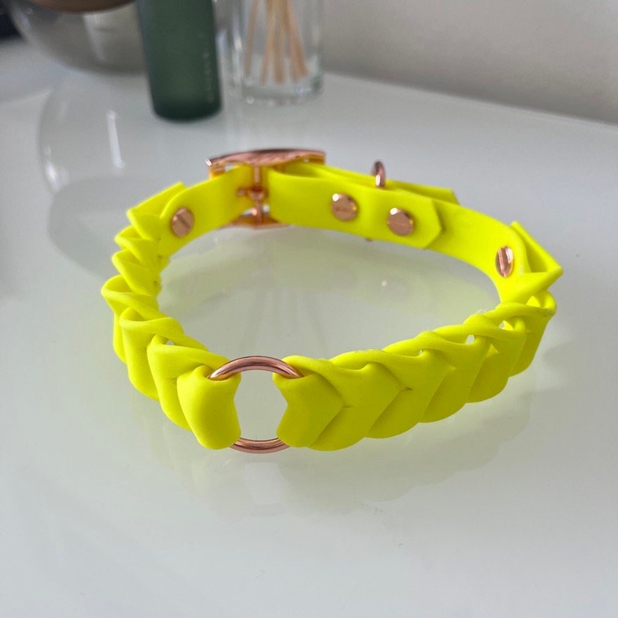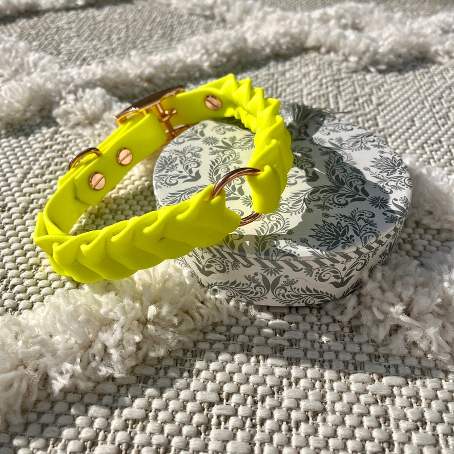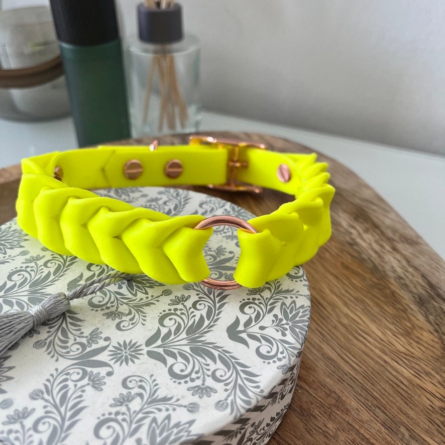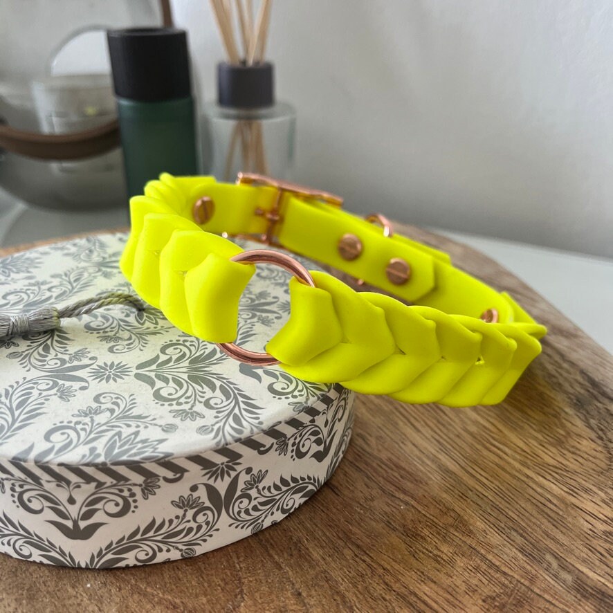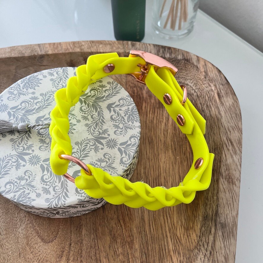 Biothane is a robust material and an alternative to leather. It is easy to clean with water. The fittings for the collar can be chosen in rose gold, gold or silver.