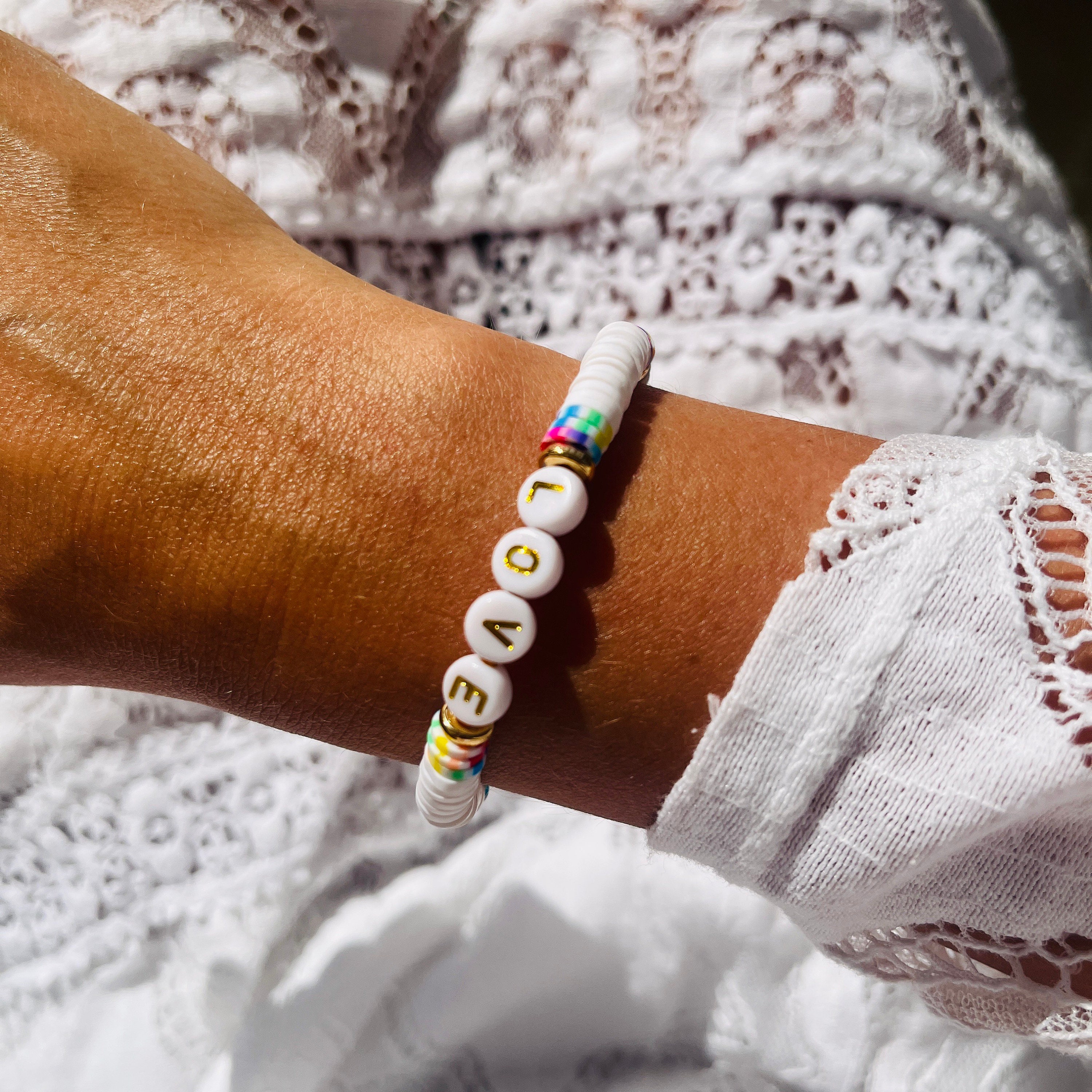 ♥ Beautiful handmade love bracelet made of Katsuki/Heishi beads, elastic and fits every wrist - the trend for 2022!