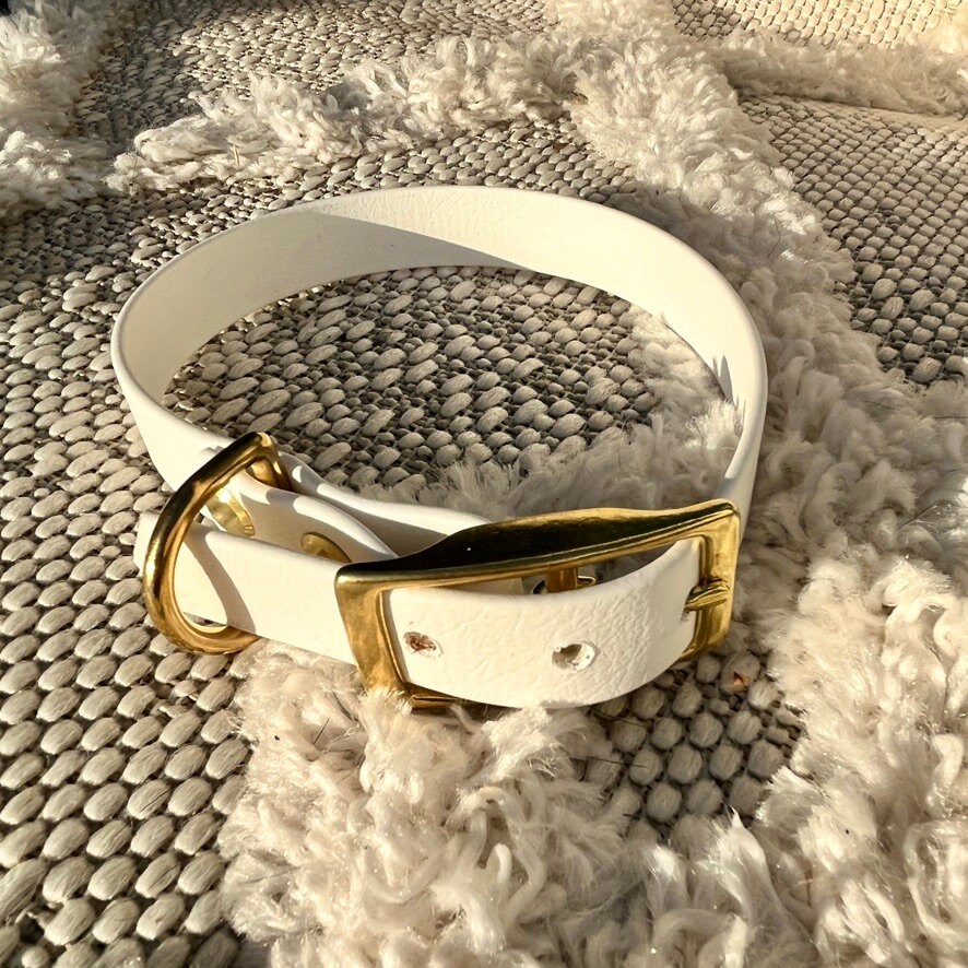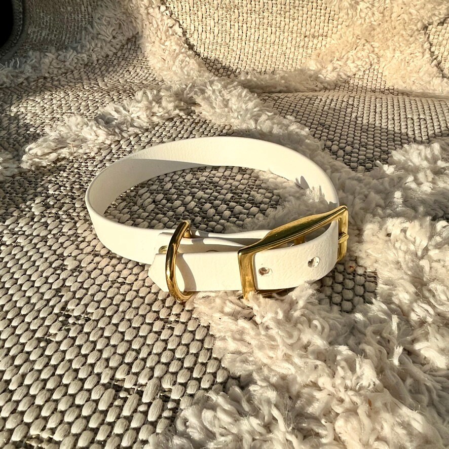 Biothane is a robust material and an alternative to leather. It is easy to clean with water. The fittings for the collar can be chosen in rose gold, gold or silver.
