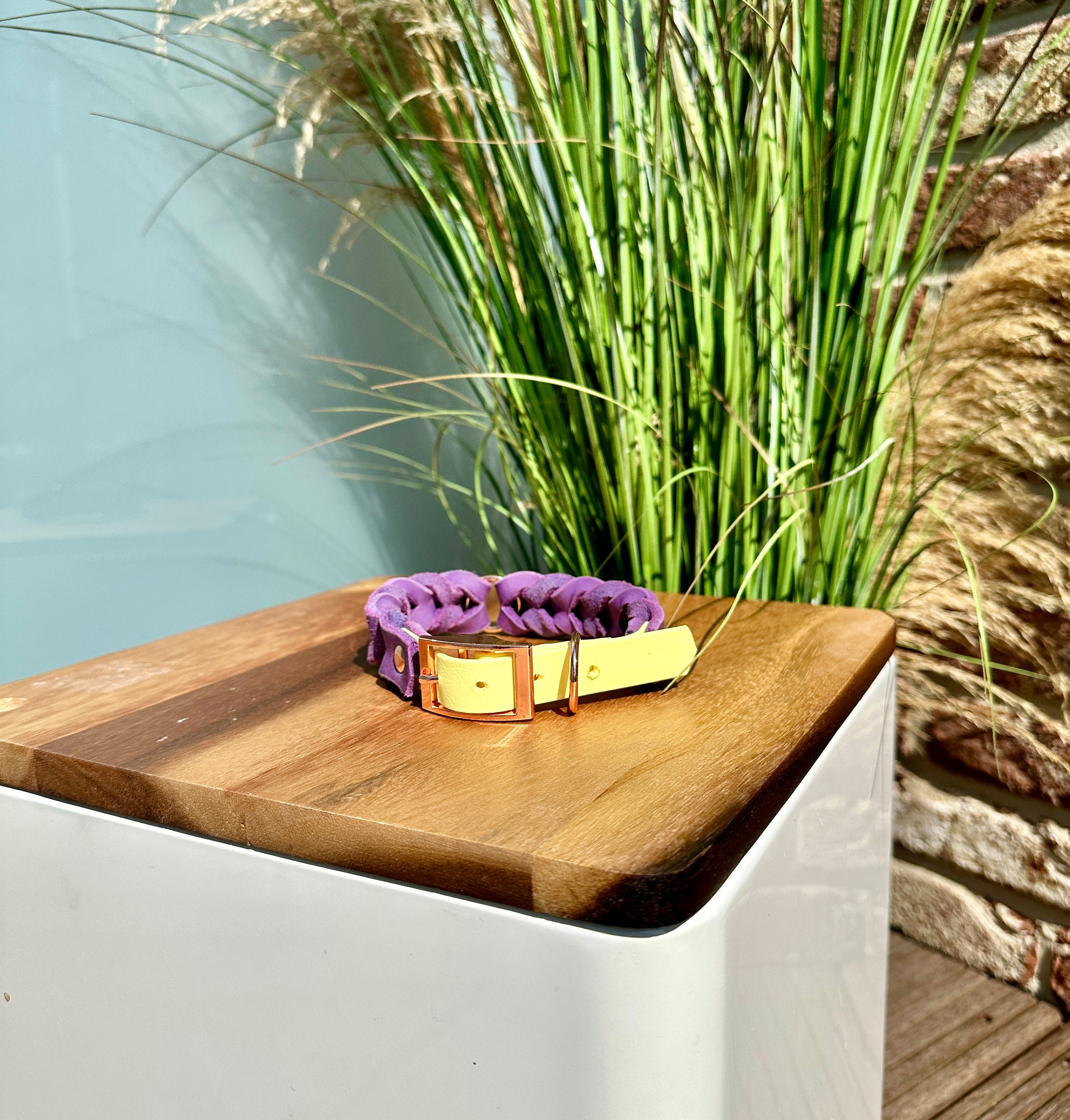 Grundsätzlich sollte ein Halsband in etwas so breit sein, wie die Nase deines Hundes. Aus diesem Grund verwenden wir in den häufigsten Fällen das Biothane der Breite 1,9 cm.