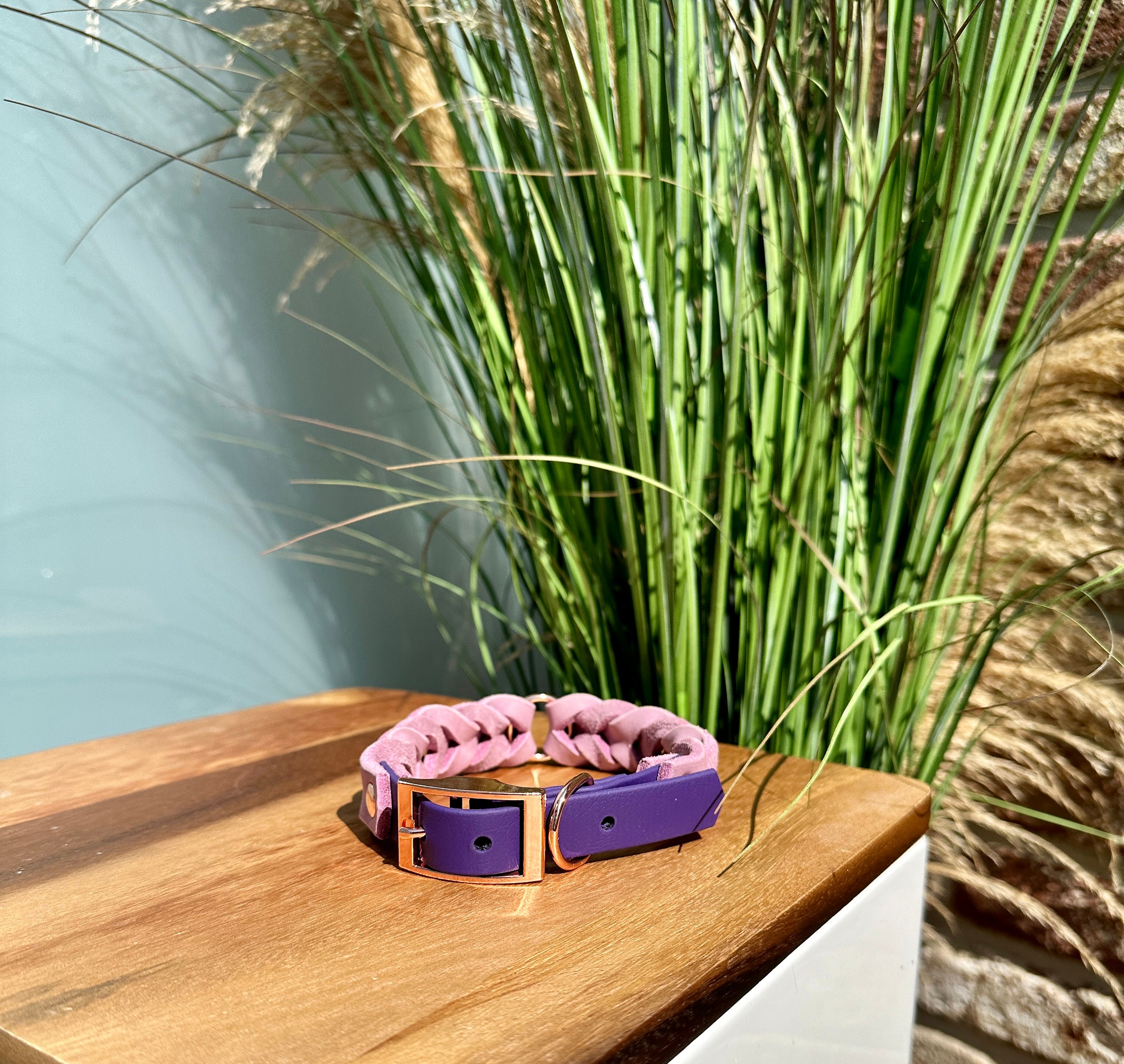 YELL OH BELLO Dog Collar made of Leather & Biothane, Lilac/Violet, Pattern
