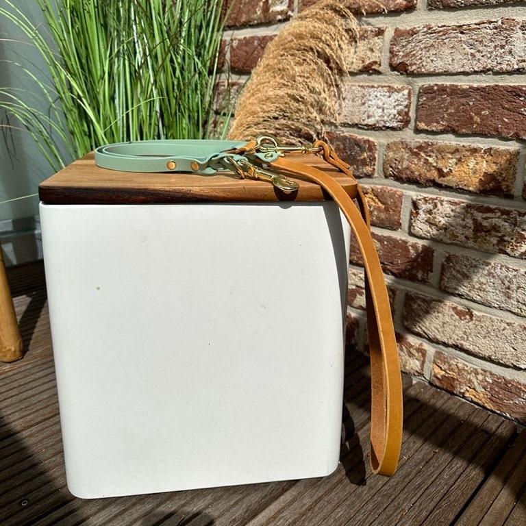 Alle Materialien können in Farbe, Größe und Form variieren. Umwelteinflüsse, Licht oder Wasser können die Beschaffenheit des Materials zudem beeinflussen, es kann mit der Zeit zum Beispiel die Farbe verändern, sich abnutzen oder weiten. Es kann in seltenen Fällen z. B. durch Nässe auf das Fell des Hundes abfärben. Für die Pflege der Materialien sollten nur dafür vorgesehene Produkte verwendet werden. Mensch und Tier können unterschiedlich auf das gegerbte Leder, auf die vernickelten Verschlüsse und die verwendeten Färbemittel der Materialien reagieren – bitte bedenken Sie das vor dem Kauf unserer Produkte. Unsere Verschlüsse haben Industriequalität – trotzdem können sich die Verschlüsse durch ungünstige Umstände öffnen, die Karabiner sich lösen, ein Hund sich aus einem Halsband befreien oder die Leine bei Abnutzung reißen. Für diese Fälle übernehmen wir keinerlei Haftung. Sollte ihr Hund das Grundgehorsam noch nicht befolgen oder z. B. ein ängstliches Tier sein, dann empfehlen wir statt unserer Produkte beispielsweise ein Sicherheitsgeschirr. Unsere verwendeten Beschläge und Materialien in Rosegold und Mattschwarz sind eloxiert, ist somit empfindlicher als unsere Hardware aus Edelstahl und Messing. Die eloxierte Hardware kann somit bei Beanspruchung an Farbe verlieren oder abblättern.