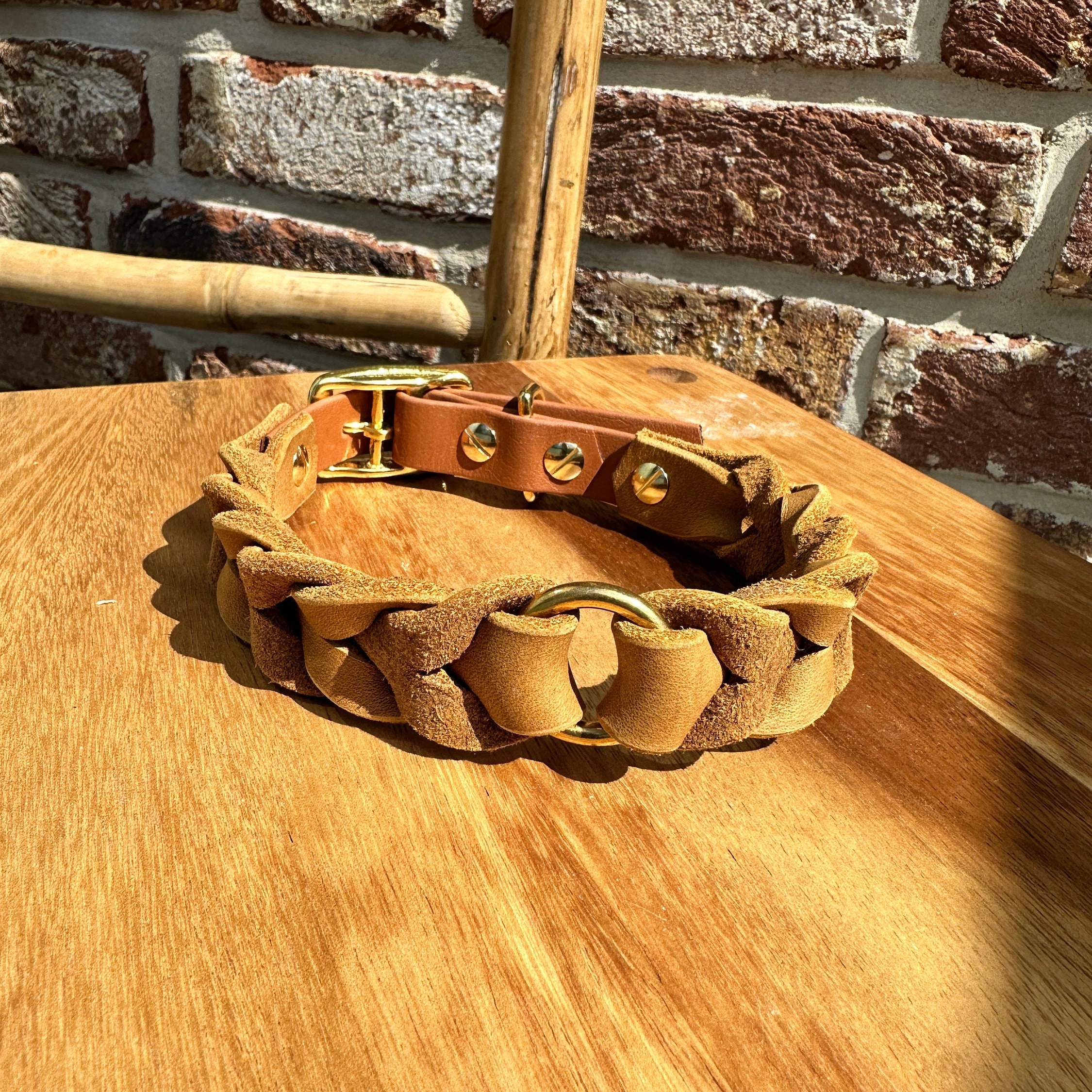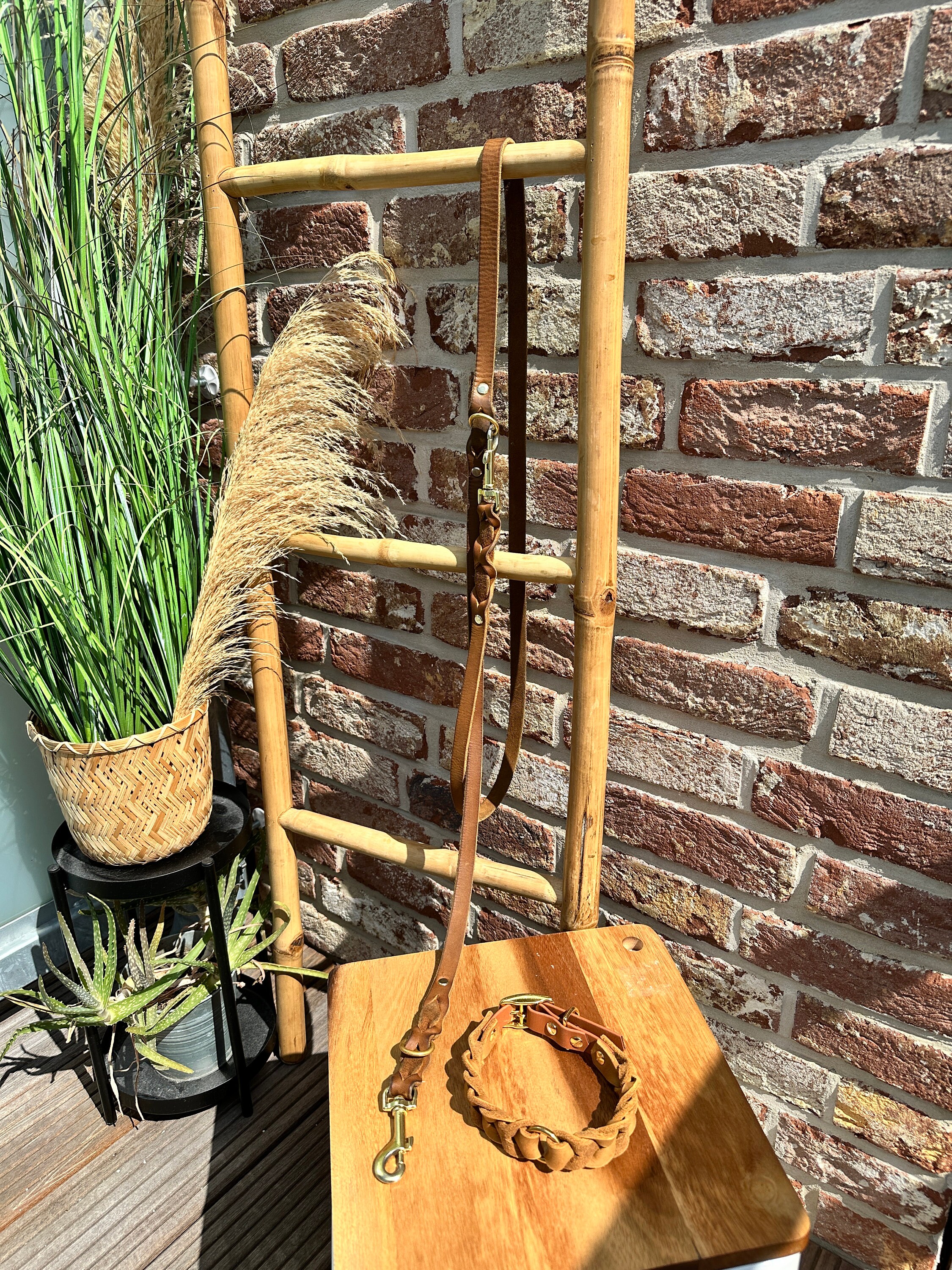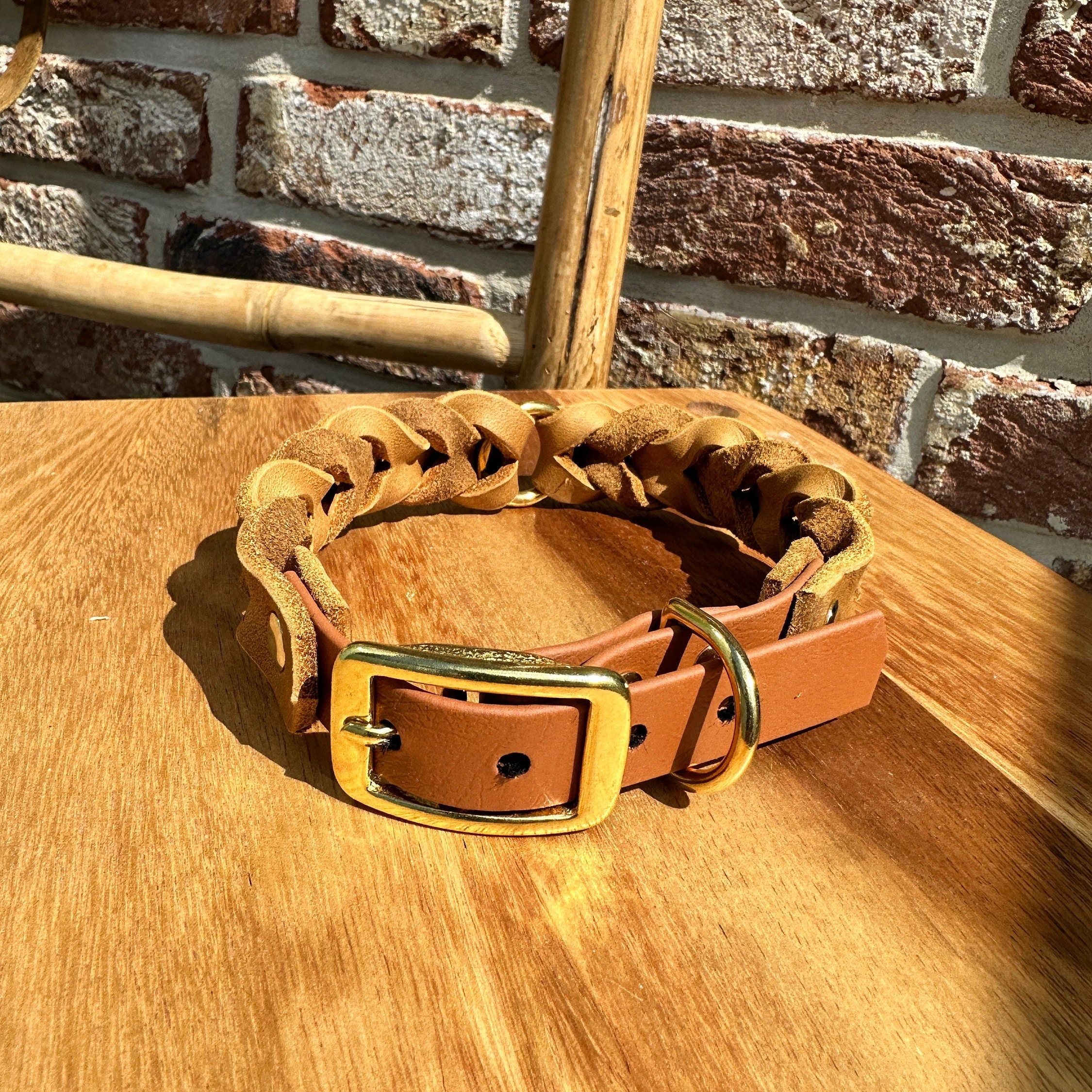YELL OH BELLO Leather & Biothane Dog Collar, Cognac/Brown